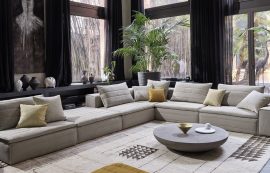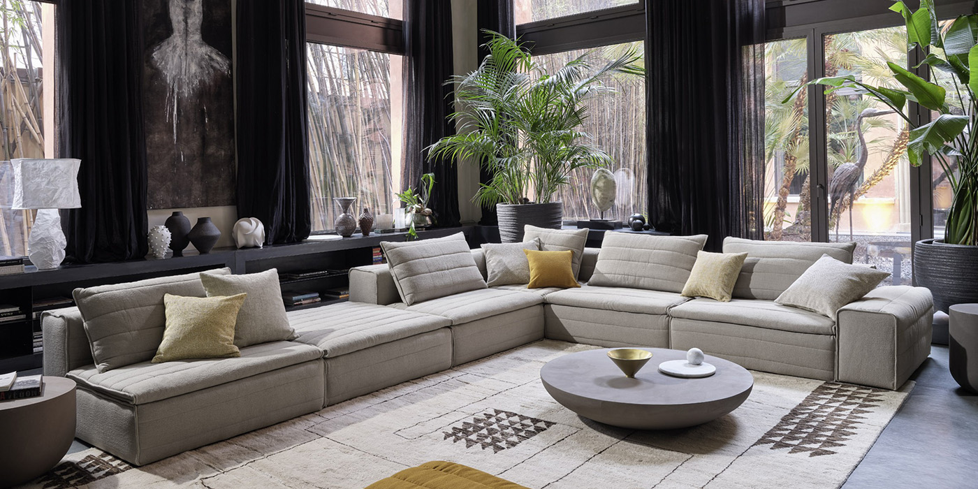 配置により自由に形が変えられるルールがないモジュラーソファ。